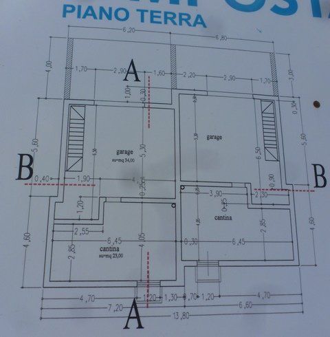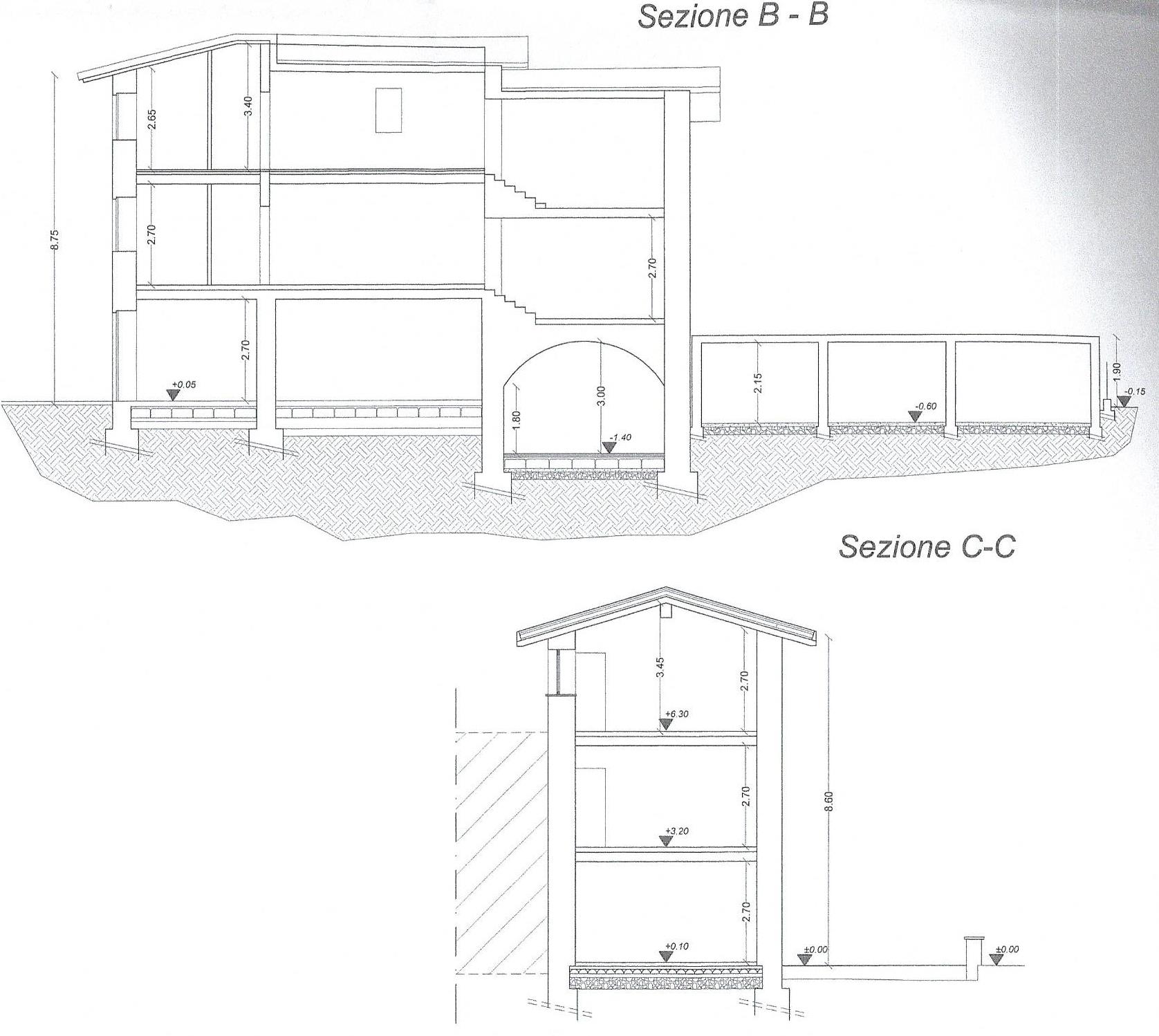 (Piano Terra, cantina e autorimessa, Piano Primo, zona giorno, bagno e n. 2 camere da letto).