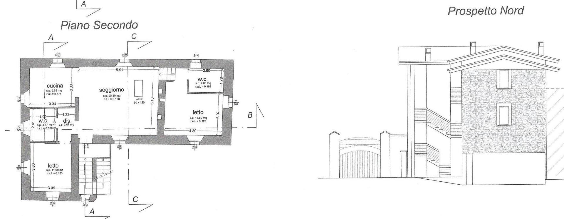 Piano Secondo: Superficie calpestabile mq 76,72 composta da